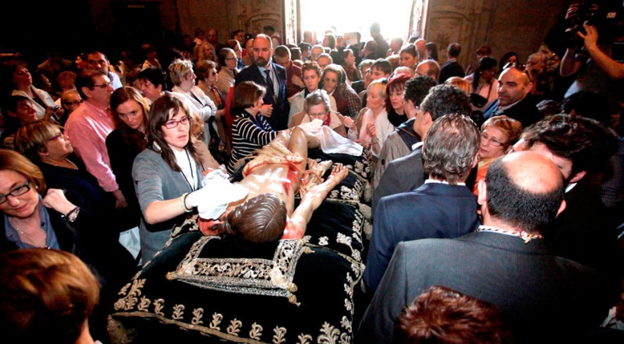 El Miércoles Santo, 1 de abril, la ciudad de Logroño vive uno de los momentos más singulares y de mayor devoción de su Semana Santa. Se trata de la Limpieza del Santo Sepulcro y posterior besapiés.