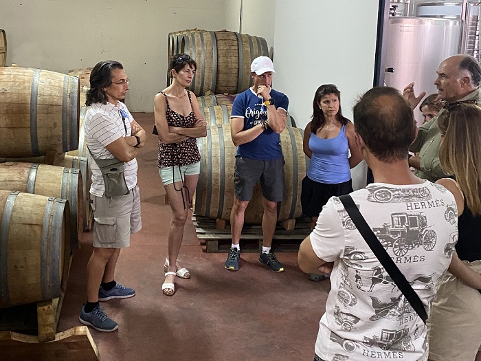 Al entrar en la bodega me encuentro con un grupo encantador que está visitando hoy la bodega. Me encanta esta coincidencia porque, al final, en su gran curiosidad se encuentra la información más interesante y, además, con ellos tengo intención de hacer un buen Coupage para disfrutar más el día de hoy. Entre el grupo, es fácil intuir donde está Rafa.